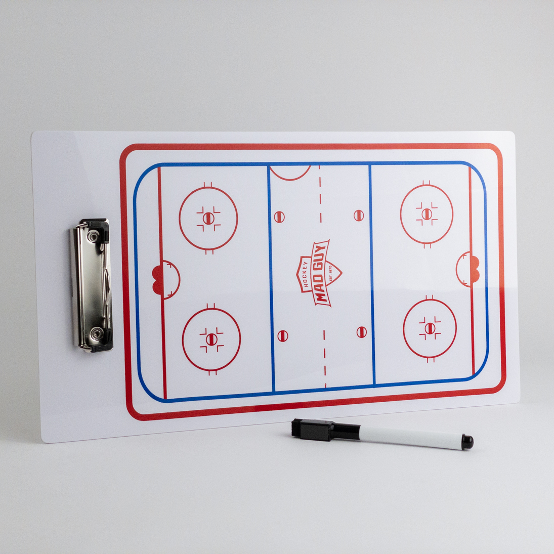 Тактическая хоккейная доска Mad Guy размером 23 х 40 см служит для планирования и согласования действий хоккейной команды. С ее помощью легко разобрать и донести до игроков их действия в конкретной ситуации.