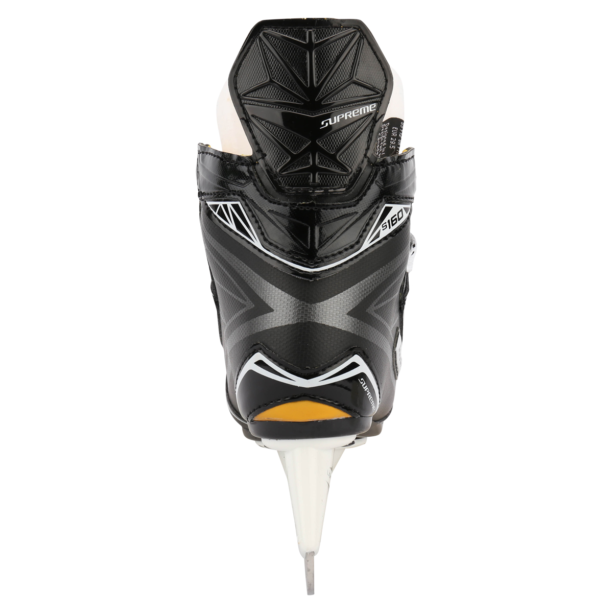 Коньки BAUER SUPREME S160, полупрофессиональная модель в новой линейке SUPREME 2016 года. Ботинок коньков имеет анатомическую форму и облегает ногу, образуя удобную и естественную посадку. Внешнее покрытие выполнено из материала 3D TrueForm, армированного слоем Tech PU, что обеспечивает повышенную жесткость ботинка и оптимальную устойчивость. Данный материал термоформируемый и после процедуры термоформовки создает персонализированную посадку. Наполнение в области голеностопного сустава выполнено из легкой пены с эффектом памяти и быстро принимает удобную, анатомически правильную форму. Внешняя, усиленная пяточная чаша обеспечивает дополнительную защиту заднего отдела стопы. Внутренний войлочный язычок имеет анатомическую конструкцию, состоит из двух частей, толщиной 40 oz, с высокопрочной защитой. Внутреннее наполнение язычка из пены высокой плотности защищает подъем стопы и переднюю часть голеностопного сустава от передавливания шнуровкой и ударов шайбой, клюшкой или коньком. Внутренняя стелька Form-Fit EVAспособствует правильному положению стопы внутри ботинка. Подошва производится из термопластичной резины. Стакан Tuuk LightSpeed Edge имеет систему быстрой замены лезвий Trigger System. Лезвия Tuuk LightSpeed Super.