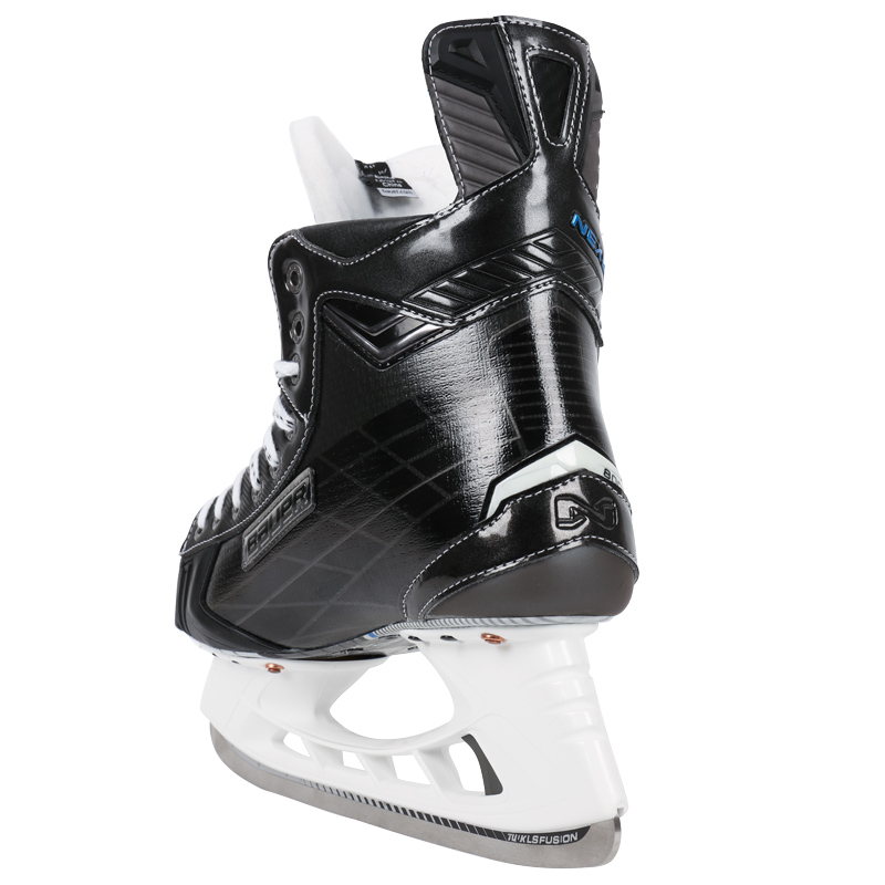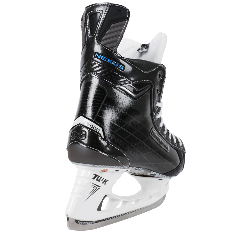 Коньки BAUER NEXUS 8000 профессиональная модель второго поколения в линейке Nexus. Ботинок имеет жесткий корпус, создающий эффективную защиту ног, обеспечивающий поддержку голеностопного сустава при маневрах, эффективную передачу усилия от ног к конькам. Внешнее покрытие ботинок выполнено из прочного, очень легкого, композитного материала 3D AnaFormable Curv, устойчивого к механическим повреждениям. Анатомически правильная конструкция корпуса создает отличную посадку коньков и более естественные движения ноги. Полностью термоформируемый корпус ботинок позволяет внутренней набивке принимать индивидуальную форму стопы, создавая удобную и плотную посадку. Износостойкая, внутренняя подкладка Hydra Max 2 эффективно отводит влагу, сохраняет тепло, быстро сохнет. Мягкая окантовка верхнего края вокруг лодыжки Total Edge Comfort уменьшает износ верхней части ботинка и препятствует натиранию мягких тканей вокруг лодыжки. Внутреннее заполнение в области лодыжки, выполненное из пены AnaForm, надежно фиксирует голеностопный сустав, повышая безопасность и комфорт при динамичном движении по льду. Интегрированная, анатомическая пяточная чаша и поддержка лодыжки плотно фиксируют голеностопный сустав и пятку, способствуя эффективной передачи энергии от ноги к коньку и обеспечивая преимущество при разгоне. Внутренняя стелька из специализированной пены Form-Fit с нескользящим покрытием Grip Print обеспечивает удобное положение стопы и исключает скольжение ноги в ботинке. Стелька имеет систему отверстий Moisture Management System для отвода влаги. Для лучше посадки ботинка в данной модели используется внутренний, трехсоставной язычок с внутренней набивкой из белого войлока плотностью 52 oz, который благодаря своей анатомической форме плотно облегает переднюю часть голеностопного сустава, снижает давление шнуровки на подъем ноги. Литой защитный элемент, интегрированный в язычок обеспечивает защиту плюсневой кости и верхней части стопы. Подошва изготовлена из легкого, композитного материала, который обеспечивает эффективную передачу энергии при каждом шаге, что позволяет хоккеисту быстро ускорятся. Коньки оснащены стаканами Tuuk LightSpeed Edge Holder, которые позволяют игроку выполнять резкие развороты за счет завышенной на 3 мм передней и задней части стакана. Лезвия LS Fusion выполнены из нержавеющей стали в нижней части и из высококачественного алюминия в верхней части. Такая конструкция позволила облегчить лезвие на 27%. Инновационная система Trigger System позволяет быстро заменить лезвие при необходимости без дополнительного инструмента.