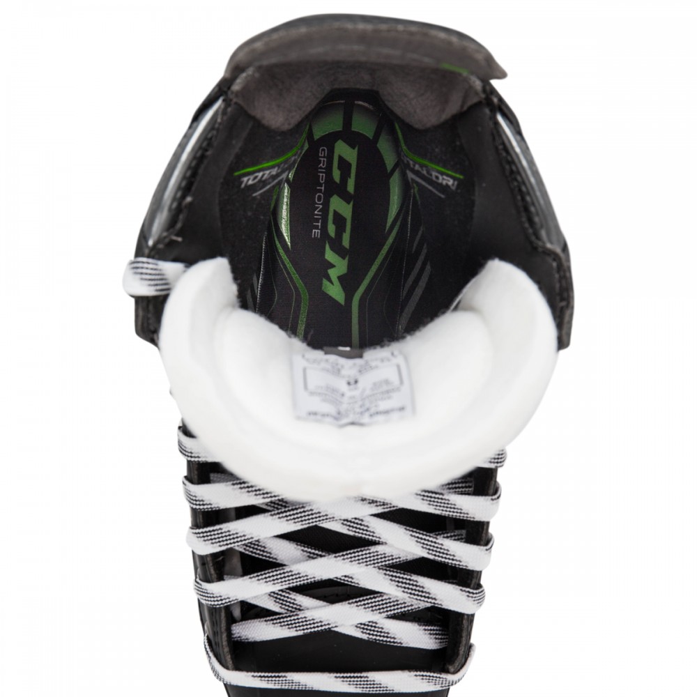 Дополнительно удерживать ногу позволяют стелька Griptonite, имеющая прорезиненные участки, и специальный материал внутренней отделки TotalDri, эффективно впитывающий влагу и сохраняющий четкий контакт конька с игроком во время всей тренировки.