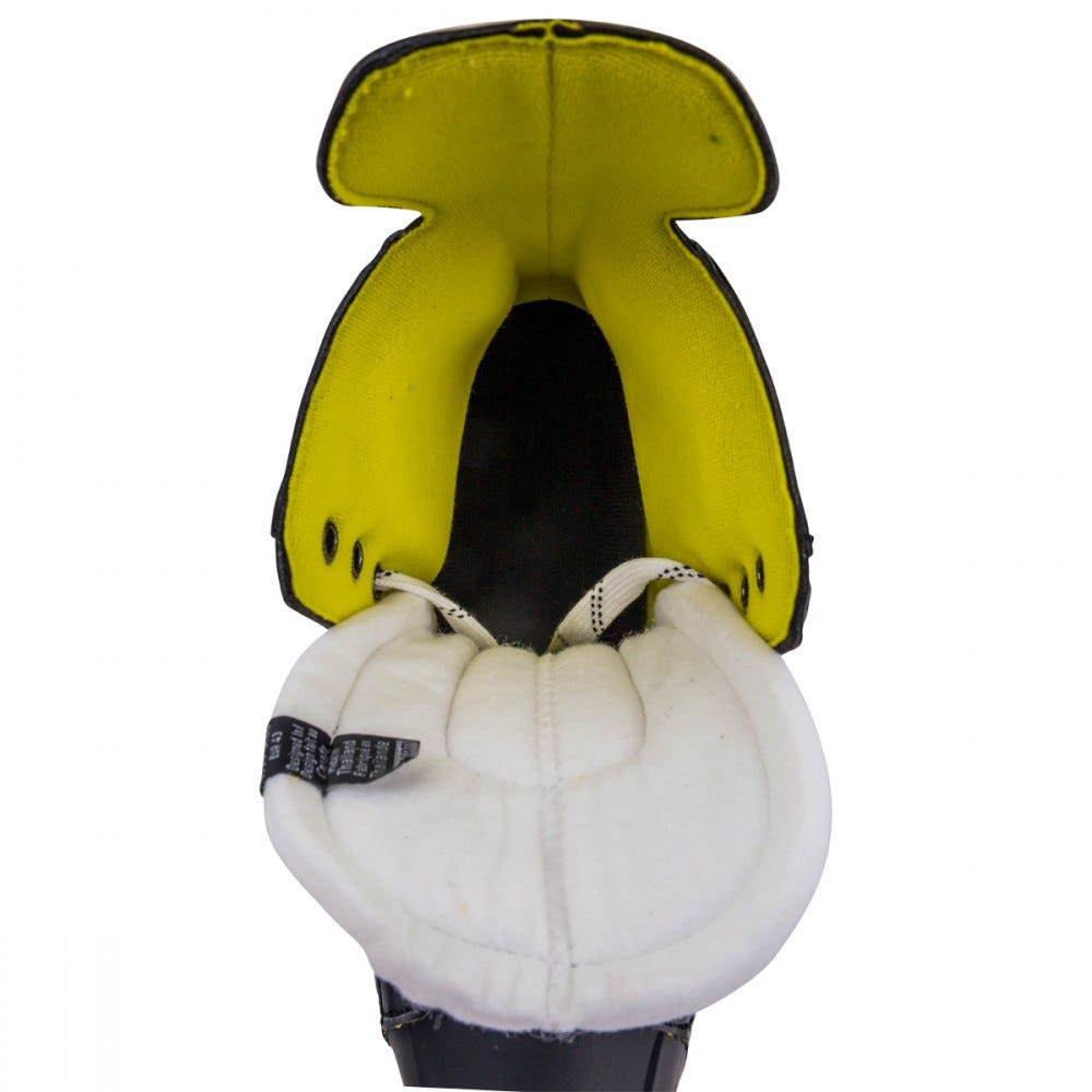 Конек имеет анатомическую форму, благодаря чему идеально сидит на ноге, улучшая передачу энергии при каждом движении. Внешний материал этого конька изготовлен полиуретана 3-D TRUEFORM TECH PU. Двухсоставной язычок выполнен из войлока плотность 30 унции. Подошва изготовлена из термопластичной резины.