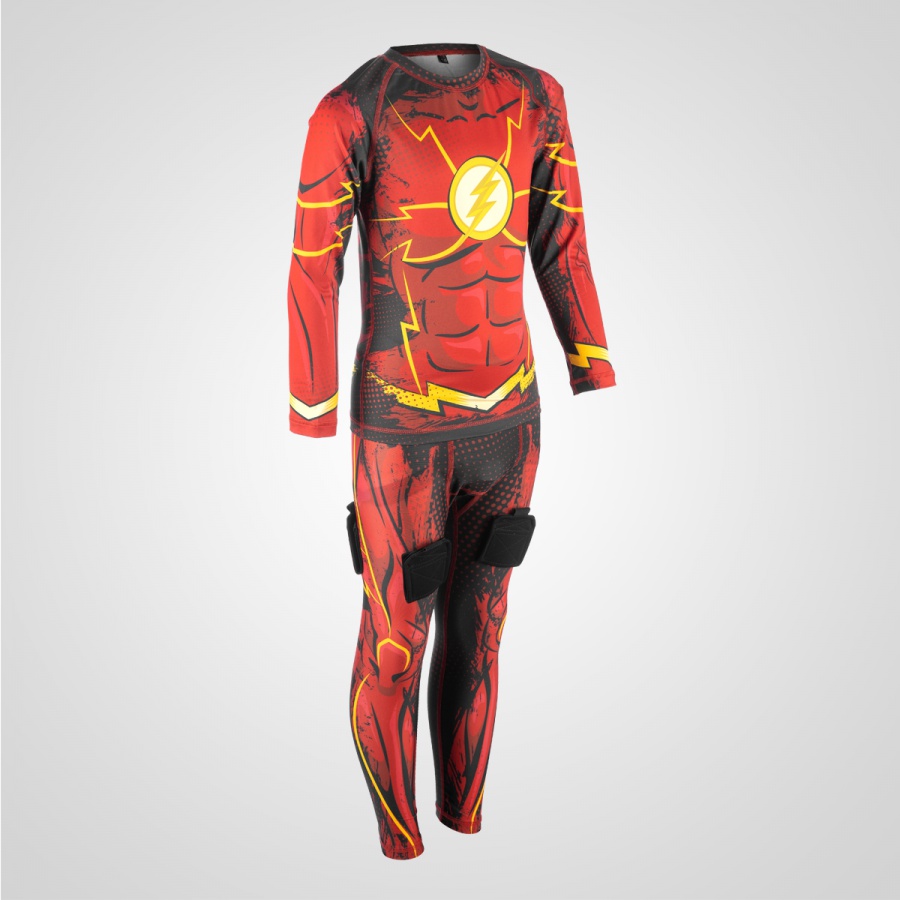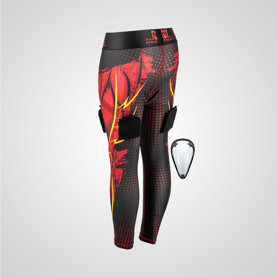 Данное нательное белье выполнено в узнаваемой супергеройской расцветке. Белье фиксируютсяя на талии ребенка эластичным поясом. Имеют плотную посадку, которая не ограничавает движение. При производстве нательного белья используется современная трикотажная ткань, которая придает изделию отличную прочность и износостойкость. Для удобства используют плоские швы, которые не натирают. Также брюки имеют липучки для фиксации хоккейных гетр.