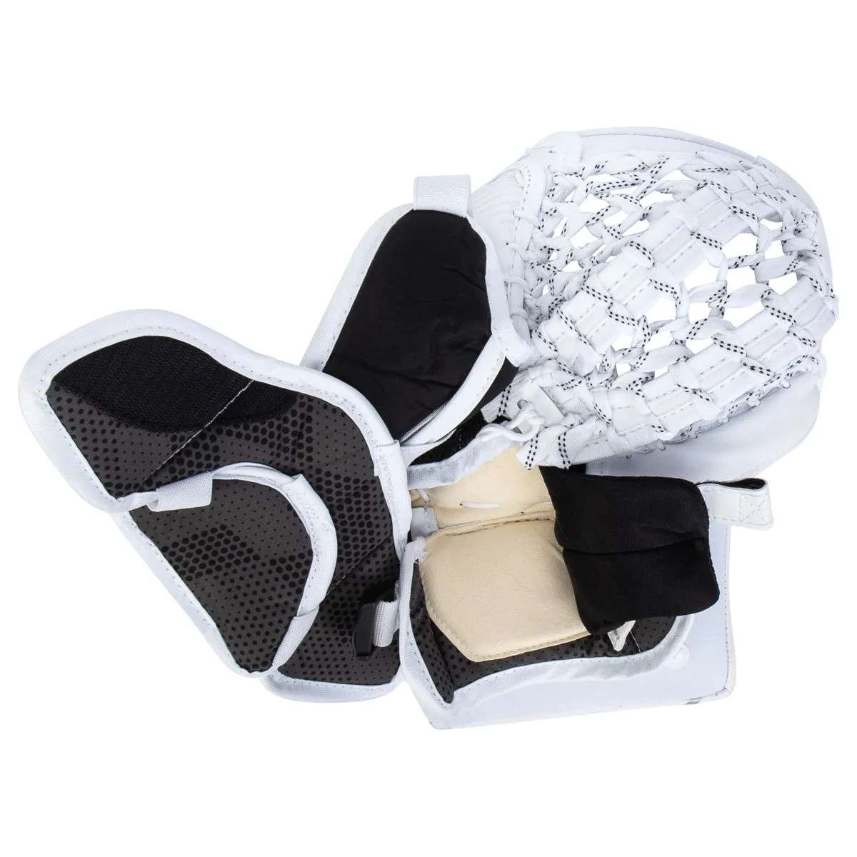 Конструкция ловушки выполнена на основе ловушек линейки SUPREME. Двойной Т-образный карман увеличенной глубины с плетением из конькового шнурка для максимальной надежности. Для защиты пальцев используется пена средней плотности, а новая система расположения пальцев дает дополнительный комфорт. Подкладка HYPERSENSE обеспечивает отличную воздухопроницаемость, благодаря которой рука вратаря остается сухой во время игры. Регулируемый ремешок на запястье и обеспечивает индивидуальную посадку и расширенный диапазон движений.
