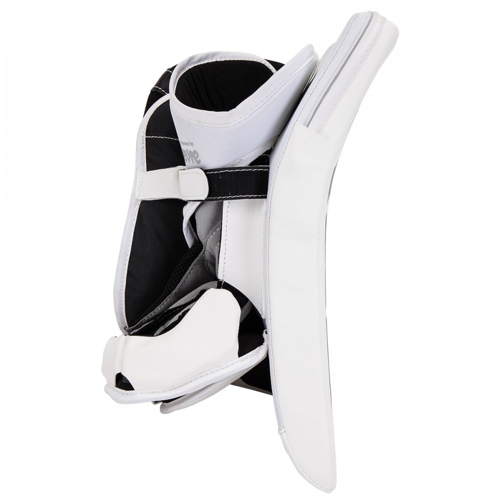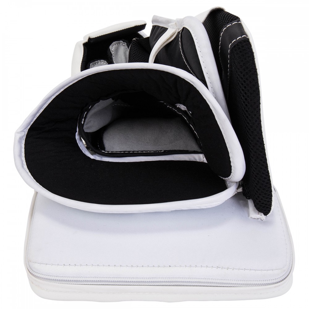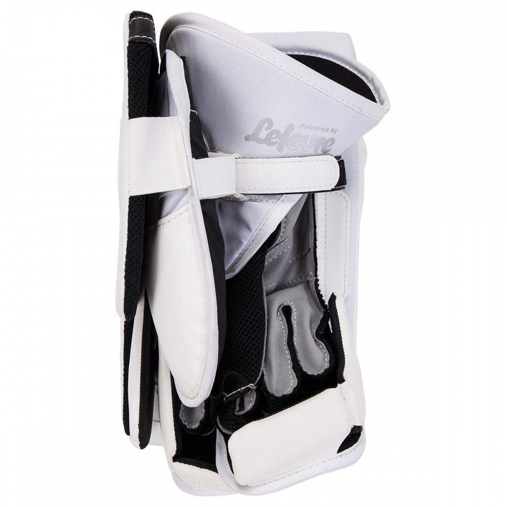 Ловушка данной модели имеет цельную конструкцию и угол закрытия кармана 60 градусов. Внешний материал данной модели выполнен из синтетического материала SPEEDSKIN, который обеспечивает долговечность и ощущение плотного прилегания. Для большей защиты в области ладони используется войлок плотностью 6 мм. Область манжеты выполнена из высококачественного полиэтилена, который максимально поглощает энергию удара. Ловушка имеет двойной Т-образный карман, для повышения видимости и эффективного смыкания. Ладонь выполнена из материала NASH, которая обладает максимальным удобством и прочностью.
