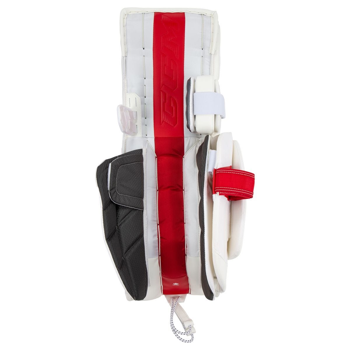 Данная модель отличается высоким уровнем защиты, максимальной гибкостью и производительностью. Внешний материал щитков выполнен из высокопрочного синтетического материала SPEEDSKIN. Этот материал обеспечивает максимально быстрое скольжения во время игры. На лицевой стороне щитка используется технология Control Rebound, которая отлично распределяет энергию удара во всей своей поверхности, а так же позволяет контролировать отскок. В области колена щиток имеет совершенно новую конструкцию CCM Molded Knee Roll, которая предназначена для достижения стабильных и контролируемых отскоков. Внутри щитки оснащены технологией Dual1teCore, которая способствует торсионному изгибу, это значит что щиток повторит все движения за вратарем. Над коленом расположен более жесткий сердечник для того чтобы создать более плотное прилегание щитка ко льду в положении баттерфляй. Внутренняя часть коленного блока выполнена из высокопрочного материала 3D Grip Injection-Molded. Щитки оснащены системой креплений Quick Motion Strapping System которая позволяет надежно зафиксировать щиток на ноге вратаря.