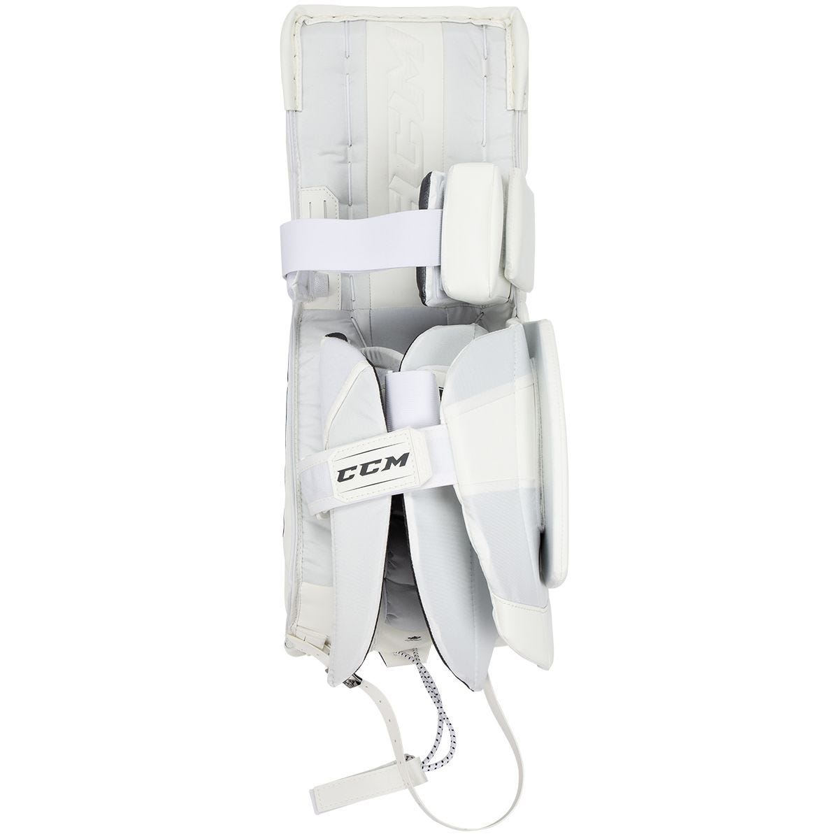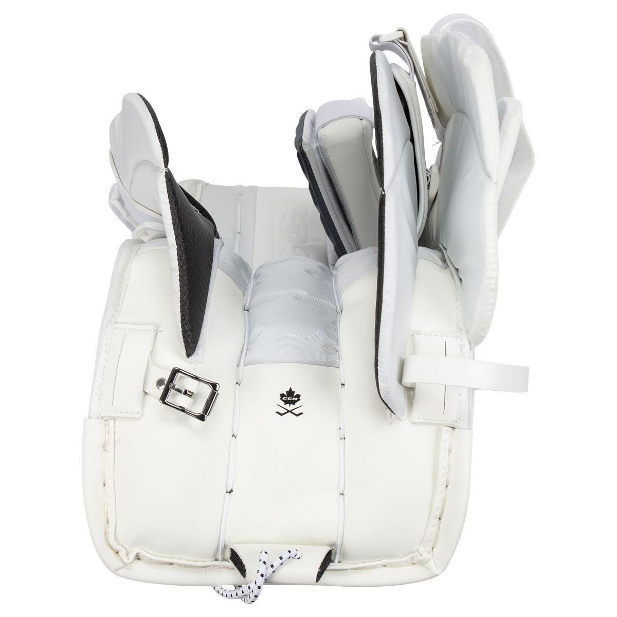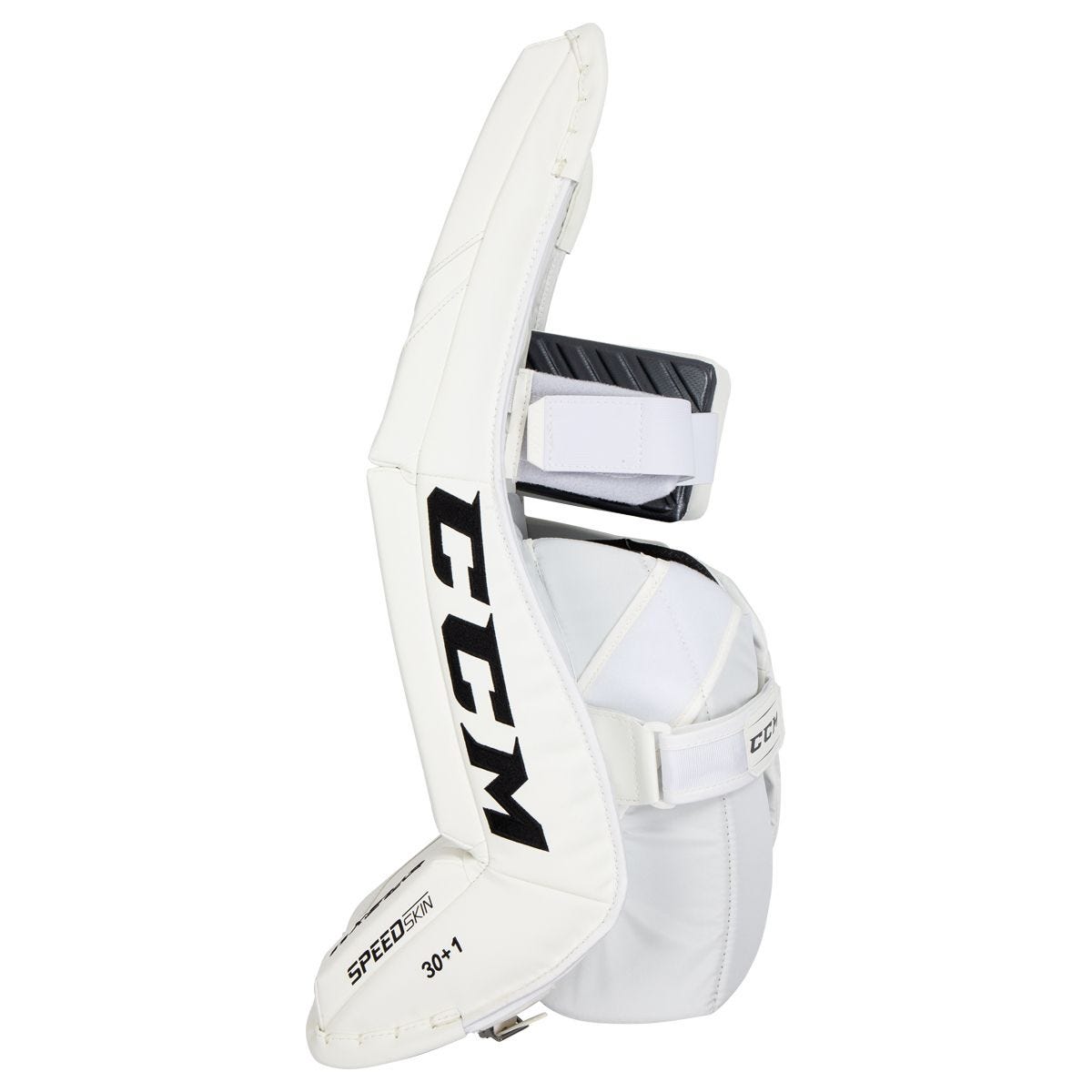 Данная модель отличается высоким уровнем защиты, гибкостью и производительностью. Внешний материал щитков выполнен из высокопрочного синтетического материала SPEEDSKIN. Этот материал обеспечивает максимально быстрое скольжения во время игры. В области колена щиток имеет совершенно новую конструкцию CCM Molded Knee Roll, которая предназначена для достижения стабильных и контролируемых отскоков. Внутри щитки оснащены технологией Dual1teCore, которая способствует торсионному изгибу, это значит что щиток повторит все движения за вратарем. На обратной стороне вы получаете систему креплений Quick Motion Strapping System, которая позволяет надежно зафиксировать щиток на ноге вратаря. Коленный блок выполнен по технологии трехмерного литья и обеспечивает эффективную амортизацию и дополнительное удобство.