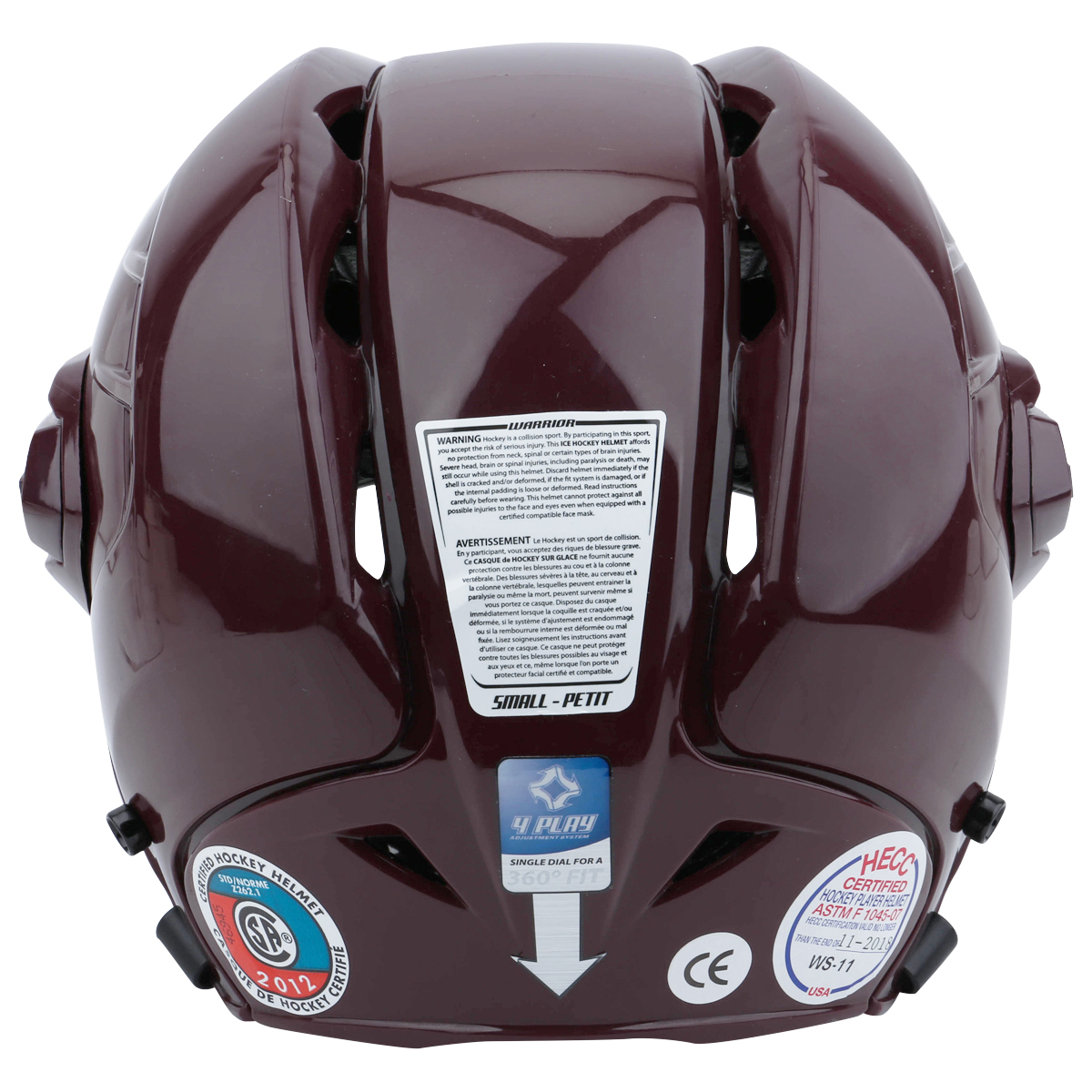 Шлем WARRIOR KROWN 360 имеет уникальную конструкцию, обеспечивающую эффективную круговую защиту головы за счет использования трех различных типов пены. Основой внутренней отделки шлема является легкая пена ЕРР с воздушными полостями, которая эффективно поглощает энергию даже самых мощных ударов. В затылочной части, в области висков и над ушами имеются накладки из пены Impax Molded Foam, которая обеспечивает максимальный комфорт и эффективно гасит более слабые удары. Мягкие накладки из пены Comfort foam - это третий вид амортизации, предназначенный для обеспечения плотной и удобной посадки шлема на голове игрока. Корпус шлема выполнен из ударопрочного поликарбоната и состоит из четырех частей – передняя часть, две боковые части и верхняя центральная часть, которая переходит в затылок. Регулировка размера шлема осуществляется путем вращения механизма регулировки, расположенного в задней части шлема, который позволяет настроить корпус и внутреннюю отделку по форме головы. При этом центральный верхний сегмент шлема смещается назад, боковые сегменты расходятся в разные стороны, позволяя шлему увеличиваться как в объеме, так и в продольном направлении. Шлем имеет прозрачную защиту ушной раковины. Вентиляционные прорези обеспечивают приток воздуха. Шлем сертифицирован HECC, CSA и отмечен европейским знаком соответствия CE.