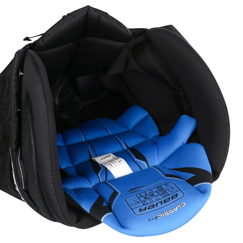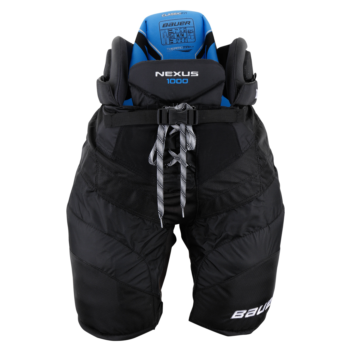 Трусы BAUER NEXUS 1000 обеспечивают хоккеисту профессиональный уровень защиты и превосходную мобильность. Внешний чехол пошит из износоустойчивого нейлона, обладающего хорошим воздухообменом. Завышенная, подвижная конструкция элементов защиты позвоночника и почек выполнена из литой пены EPP, которая легче на 15% традиционной пены двойной плотности и имеет на 10% выше уровень поглощения энергии при ударе, обеспечивая более эффективную защиту. Использование композитной пены Vent Armour в качестве дополнительной внутренней набивки в элементах защиты позвоночника и почек увеличивает защитный эффект. Сегментированный элемент защиты копчика с внутренней набивкой из пены высокой плотности со вставкой из поликарбоната создает надежную защиту при падении или ударах. Элементы защиты таза и бедра выполнены с использованием технологии F-One Shell, в результате чего жесткие, пластиковые вставки заменены на литые вкладки из пены высокой плотности, что способствует снижению веса и созданию усиленной защиты. Нижняя часть бедер защищена ребристыми, пластиковыми элементами с внутренним наполнением из пены высокой плотности, которая эффективно амортизирует удары. Мягкий накладной элемент защищает брюшную полость. Дышащая, внутренняя подкладка Thermo Max + способствует отведению излишков влаги и тепла, обеспечивает постоянный воздухообмен и имеет антибактериальную пропитку. Эластичные вставки Dynamic Flex Zones в чехле обеспечивают игроку максимальную свободу при движении. Молнии на внутренней стороне штанин позволяют изменять плотность прилегания штанин к ноге. Шнуровка и ремень, заключенный в чехол из пены высокой плотности для дополнительной защиты, позволяют быстро и плотно фиксировать трусы на теле хоккеиста.