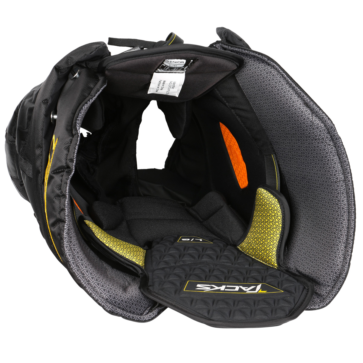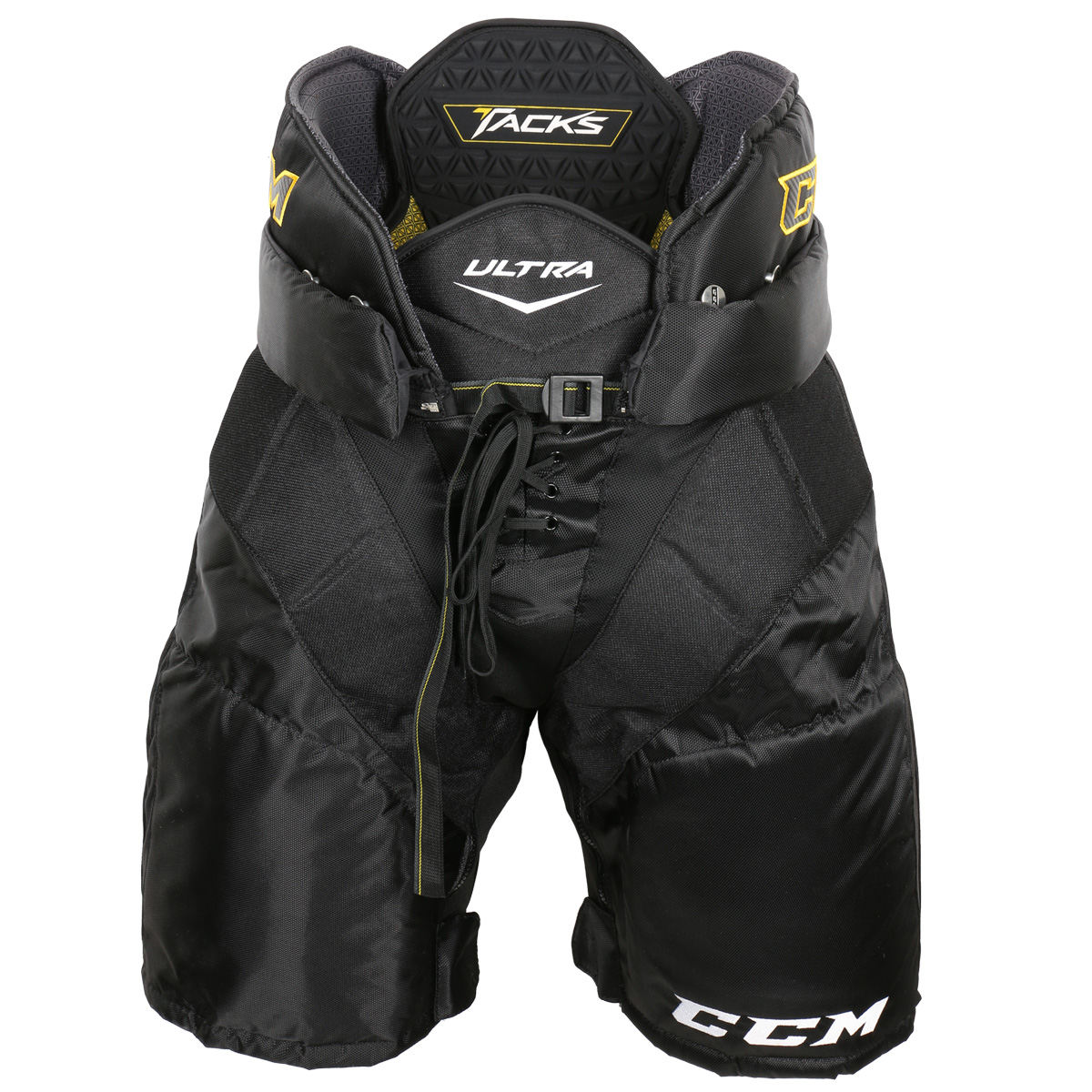 Трусы CCM ULTRA TACKS обеспечивают защиту профессионального уровня. Инновационные технологии, используемые при изготовлении данной модели, позволили получить более высокий уровень защиты, комфортную посадку и максимальную подвижность защитного снаряжения. Чехол трусов выполнен из высокопрочного нейлона и имеет дополнительные вставки в местах наибольшего истирания. Эластичные вставки обеспечивают большую свободу движений. Завышенная талия со вставками из формованного полиэтилена создает усиленную защиту области почек. Плавающий элемент защиты позвоночника выполнен из пены высокой плотности. Контурный элемент со вставкой из полиэтилена и внутренним наполнением из сегментированной пены обеспечивает эффективную защиту копчика. В элементах защиты тазобедренных суставов используются формованные пластиковые вставки с применением технологии JDP, которая позволяет рассеивать энергию удара от хрупкого сустава на прилегающие мышцы. Внутреннее наполнение защиты тазобедренных суставов выполнено из специализированной пены D3O, которая остается мягкой и подвижной в обычном состоянии и при поглощении несильных ударов, в то время как при ударах высокой силы пена моментально твердеет, создавая эффективную защиту сустава, после чего снова возвращается в мягкое, гибкое состояние. Элементы защиты бедра имеют формованные, пластиковые вставки с внутренним наполнением из пены Comfort. Трусы имеют интегрированную защиту паха с системой внутренних ремней, обеспечивающих плотное прилегание защитного элемента к телу. Сетчатая подкладка обеспечивает хорошую воздухопроницаемость защитного снаряжения. Широкий пояс с внутренним наполнением из пены и пластиковыми вкладками обеспечивает дополнительную, опоясывающую защиту. Молния, расположенная под поясом, позволяет удлинить трусы на 2,5 см, что удобно для растущих и высоких игроков. Молнии на внутренней стороне штанин увеличивают ширину для более свободной посадки. Шнуровка и нейлоновый ремень с прочным карабином надежно фиксируют трусы на теле хоккеиста.