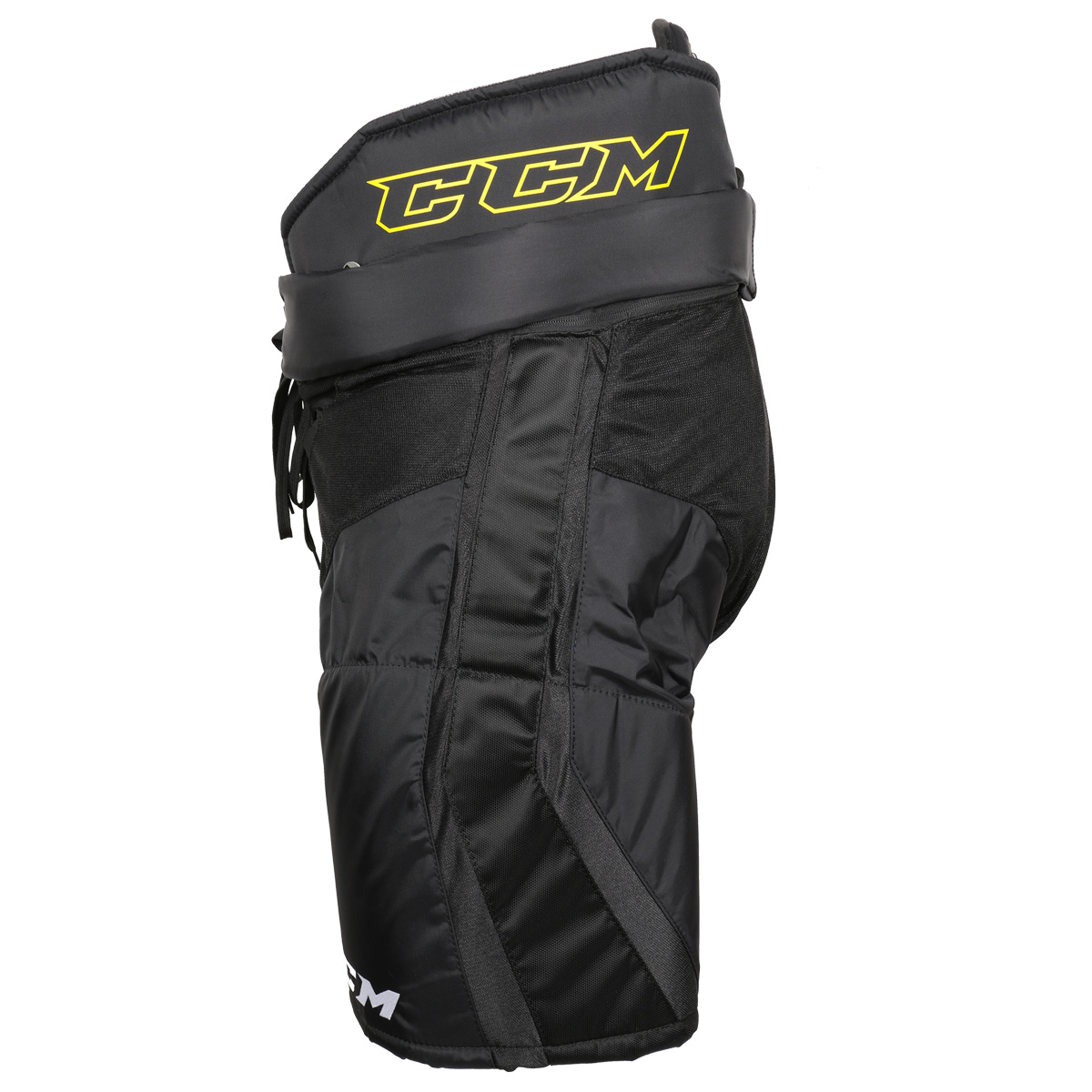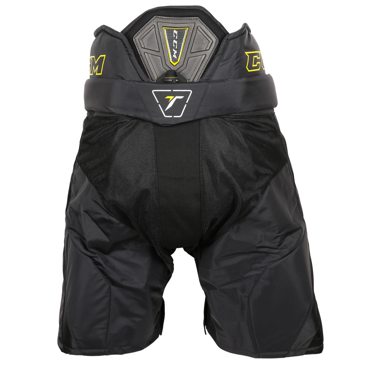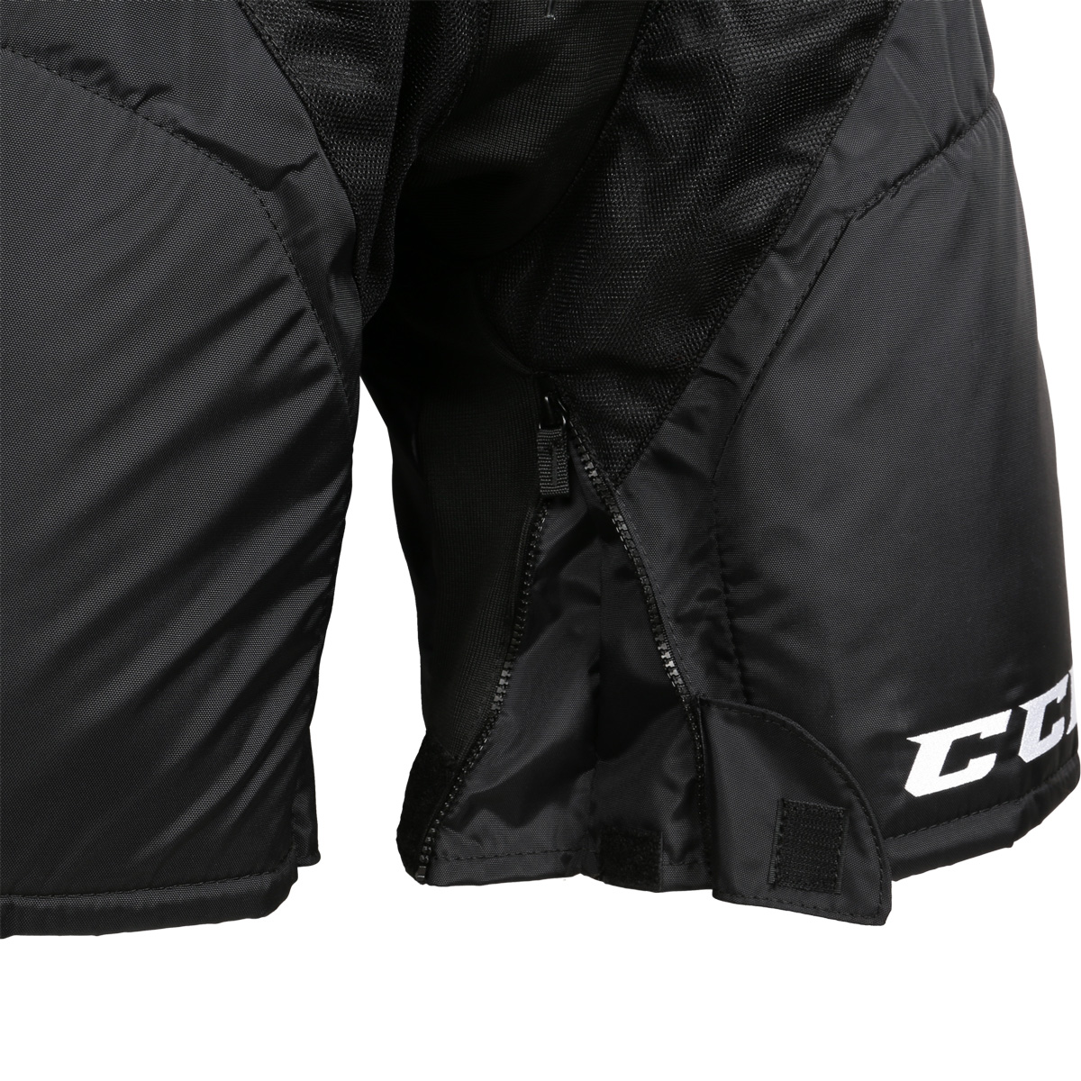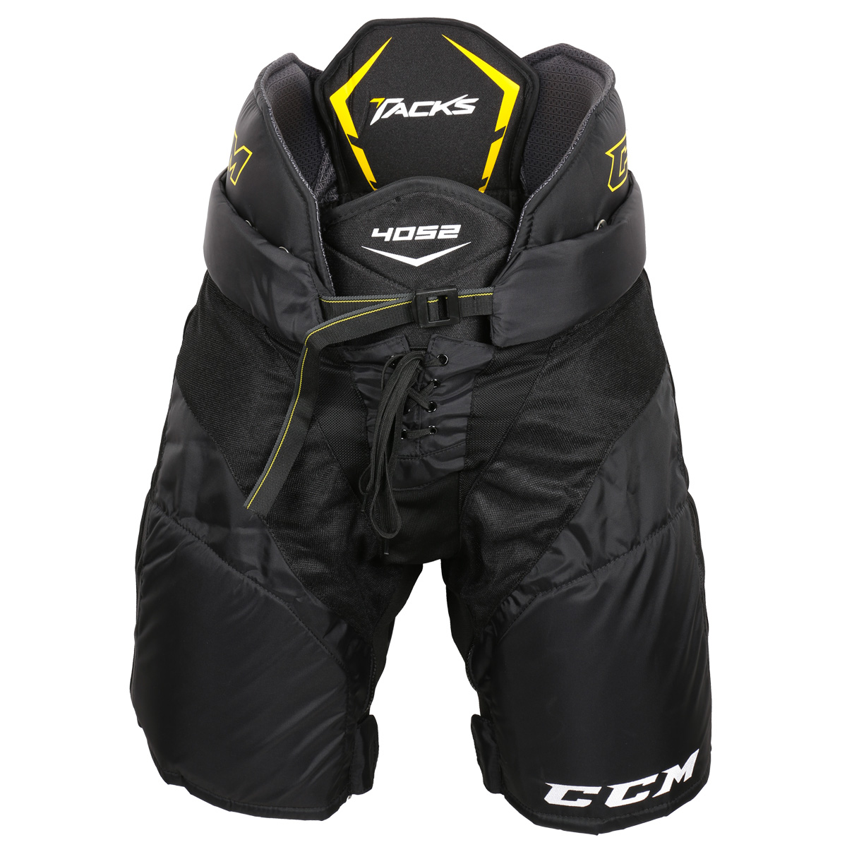 Трусы CCM TACKS 4052 модель полупрофессионального уровня. Чехол трусов выполнен из износостойкого нейлона и усилен в местах подверженных максимальным нагрузкам. Эластичные клинья в чехле обеспечивают дополнительную подвижность защитного снаряжения. Плавающий щиток, защищающий позвоночник, изготавливается из толстого слоя пены средней плотности и дополнительно усилен пластиковым вкладышем. Сегментированная защита копчика выполнена из легкой пены и усилена полиэтиленовой вставкой. Область почек закрывает и защищает завышенный пояс, который выполнен из формованного пластика и выстлан слоем пены. Тазобедренные суставы защищают чаши конструкции JDP, которые выполнены из формованной пластиковой вставки, покрытой пеной средней плотности. Такая конструкция перераспределяет силу удара с суставов на соседние мышцы, снижая вероятность травмирования суставов. Защитные щитки, закрывающие бедра, выполнены из толстого слоя пены средней плотности с пластиковой кладкой, что создает их надежную защиту. На штанинах с внутренней стороны вставлены молнии, которые увеличивают ширину штанины при необходимости. Подкладка выше талии выполнена из мягкой микрофибры, которая обладает высокой износостойкостью. В штанинах в качестве подкладки используется вспененный материал Comfort Foams, обеспечивающий комфортное состояние ног. Сетчатые вставки на штанинах обеспечивают хорошую вентиляцию внутреннего пространства. Трусы имеют регулируемую посадку и могут удлиняться на 1" за счет вшитой под поясом молнии. Трусы фиксируются на теле с помощью нейлонового ремня и шнуровки.